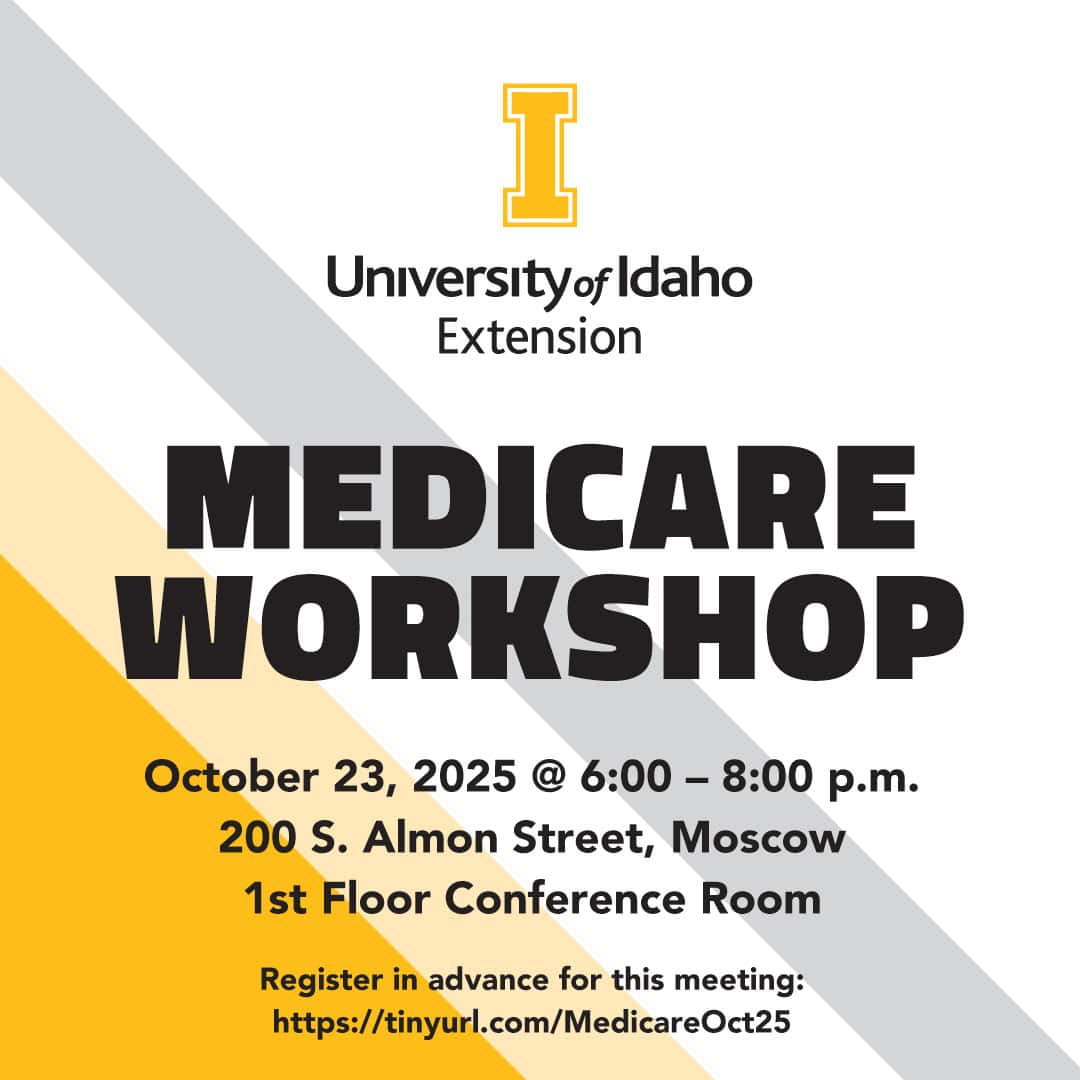 October 23, 2025 Free In-Person at 200 S. Almon Street, Moscow, ID Nearing 65 or helping a family member with retirement plans? Join this workshop led by a SHIBA representative from the Idaho Department of Insurance. In just two hours, you’ll gain a clear understanding of Medicare and its parts, get answers to your questions,… |